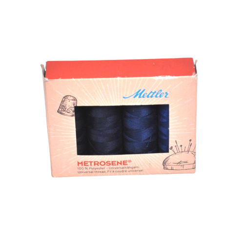 Mettler Metrosene 4 Spool Thread Set Navy Contains four Art. 9161, 164yd spools in the colors 0827, 1465, 0823, 1303. 100 percent polyester. Perfect for Sewing, Quilting, Embroidery, and Overlocking. CHK-ME49161NV-KIT