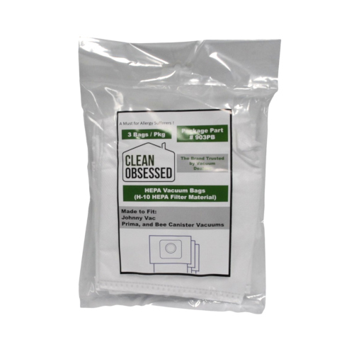 Clean Obsessed Johnny Vac Prima and Bee Canister HEPA Vacuum Bags 903PB. HEPA Canister Vacuum Bags. Designed To Fit: Jonny Vac Prima and Jvac Bee Canister Vacuums. Package Contains 3 HEPA Vacuum Bags. Manufacturer Part Number: 903PB. DES-903PB